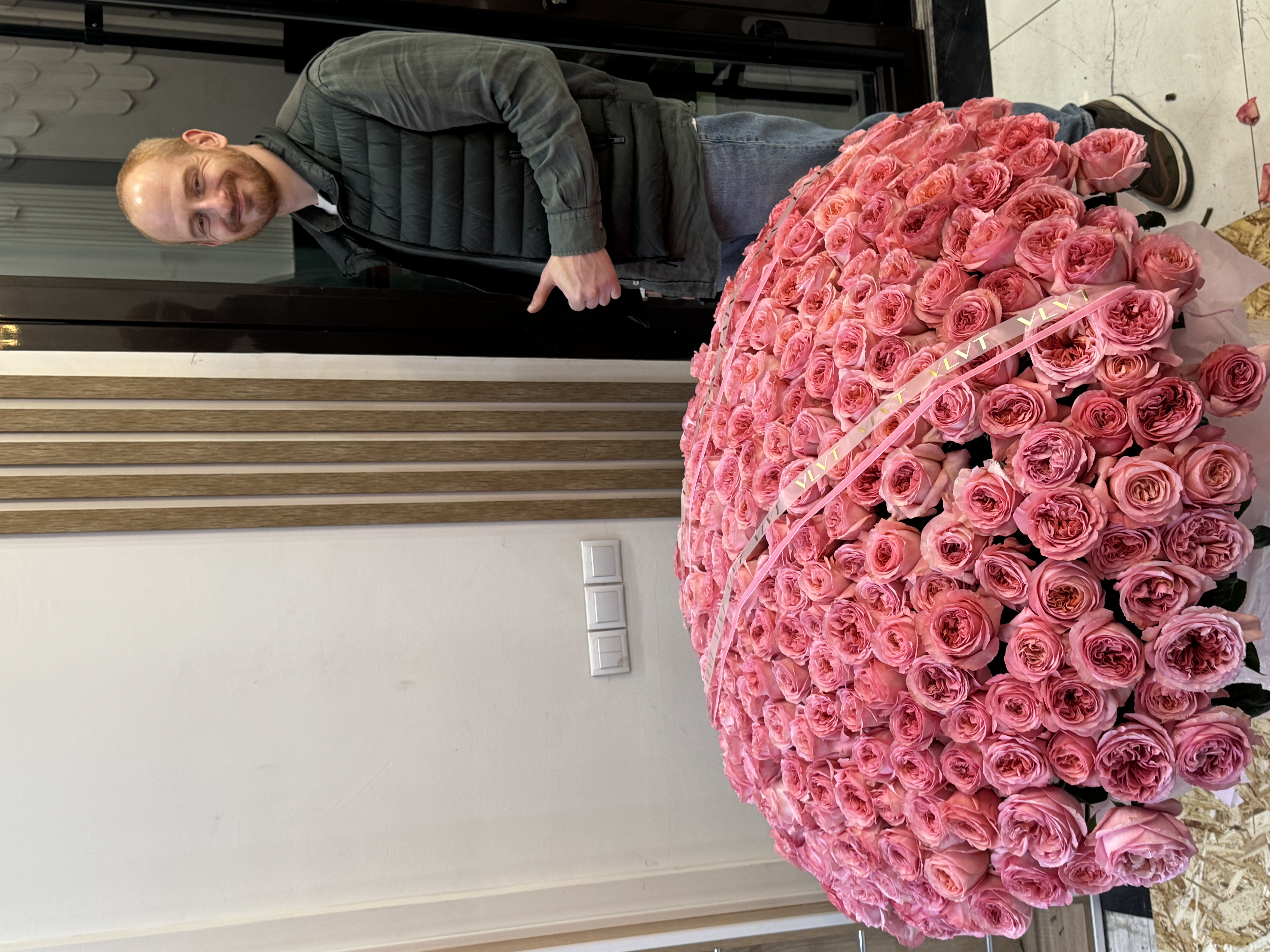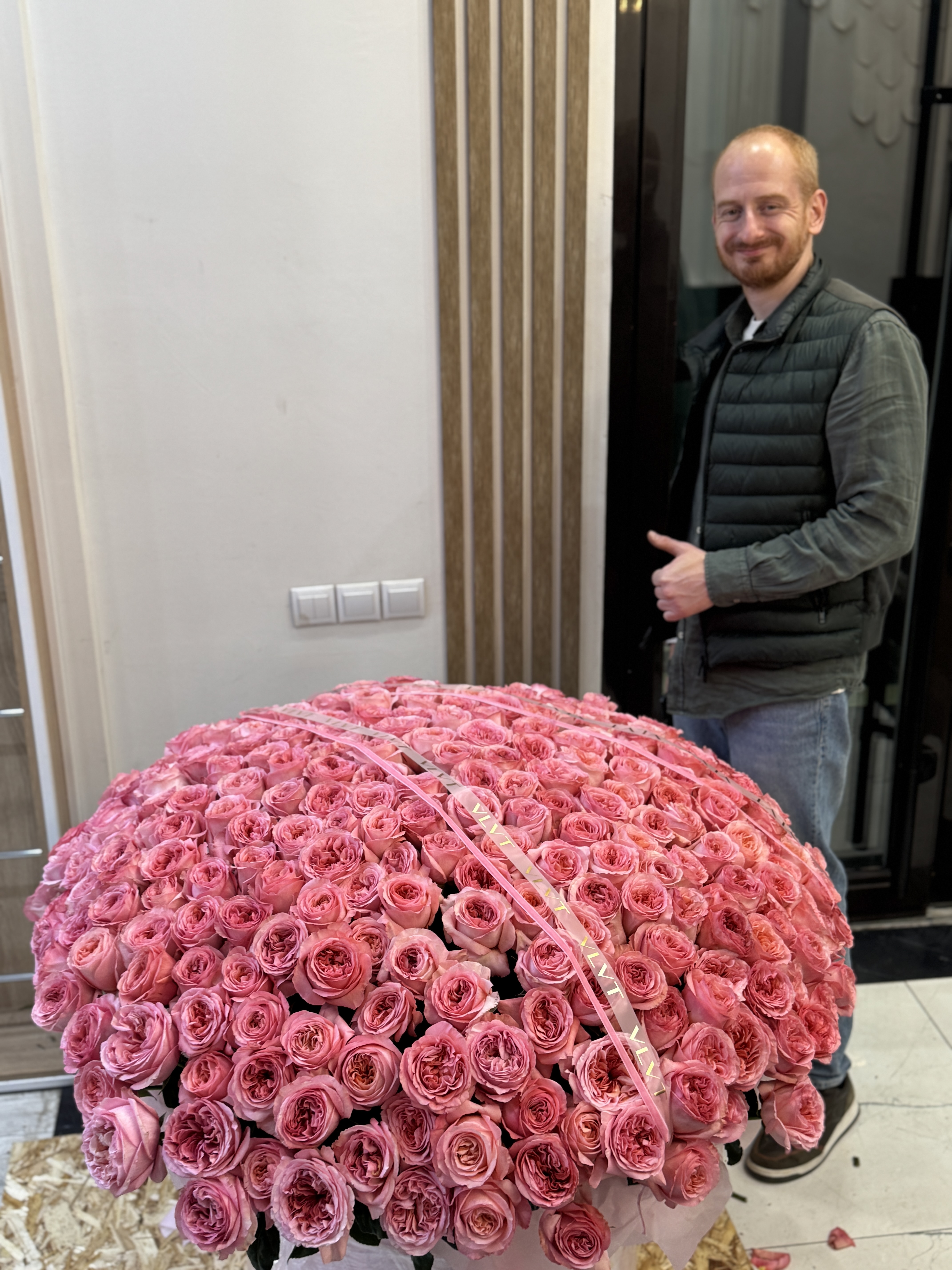 • 🔹 собирается вручную из свежих пионовидных роз Pink Expression